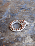 Este anillo, es de plata fina aleación 950 y posee granalla de Cobre Chileno.