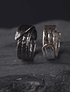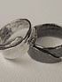 Estas hermosas Argollas fueron diseñadas y fabricadas a mano en Plata Fina aleación 950, la argolla del hombre fue patinada ( oxidada) hacia el negro. Ambas argollas poseen texturas y tienen terminación pulido espejo.